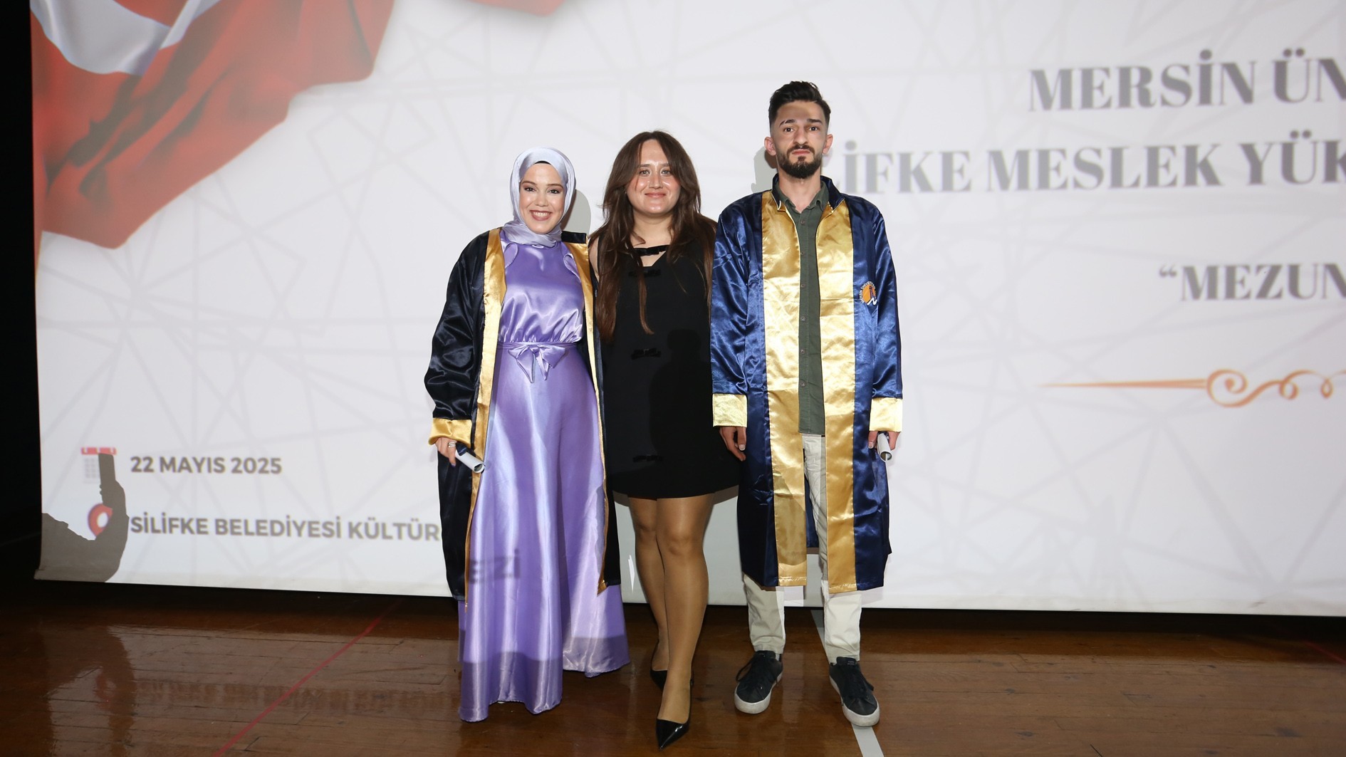 Silifke MYO mezunları, ailelerinin gururu ve öğretim üyelerinin rehberliğinde, hayatlarının yeni dönemine adım attı.