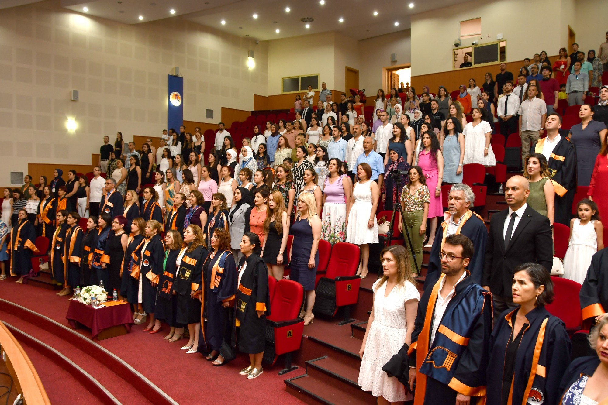 Son 5 yılın yüksek lisans ve doktora mezunu öğrencileri için yapılan tören Saygı Duruşu ve İstiklal Marşı ile başladı. Ardından açış konuşması yapan Prof. Dr. Bahar Taşdelen, “Sağlık Bilimleri Enstitüsü Müdürü Prof. Dr. Bahar Taşdelen “Enstitümüz bugüne kadar 807 mezun vermiş olup son 5 yılda verdiğimiz mezun sayısı 295’tir. Mezunlarımızın pek çoğu öğrencilikleri sırasında da çalışma hayatını deneyimlerken kimi akademisyen olarak kimi eczanesinde çalışarak kimi de sağlık çalışanı olarak bir kısmı da mezun olduktan sonra iş ortamına adım atmışlardır. Bazı mezunlarımız da uluslararası değişim programından faydalanarak yurt dışını deneyimlemektedir. Her nerede olursa olsunlar mezunlarla bağımızı koparmadığımızı görmek hayatlarında bir anı bırakmak adına son 5 yılda mezun olan öğrencilerimizi, danışmanlarımızı ve sevgili ailelerini davet ettik. Bugün olduğu gibi bundan sonra da sağlık bilimleri enstitüsünün mezunları için hedeflediği çok güzel işler var ve bunun başında da ORPHEUS etiketi geliyor en yakın zamanda ORPHEUS bizden istediklerini tamamlayıp etiket başvurumuzu yapmayı planlıyoruz bunun bizi ve mezunlarımızı Avrupa ve Dünya arenasında ileriye taşıyacağına inanıyoruz. Bugün burada bizimle birlikte olan mezunlarımızı onların ailelerini ve yetişmelerine katkı sağlayan tüm danışman hocalarımızı bu vesileyle kutluyorum ve sağlık mutluluk ve başarı dolu bir hayat diliyorum.” dedi.