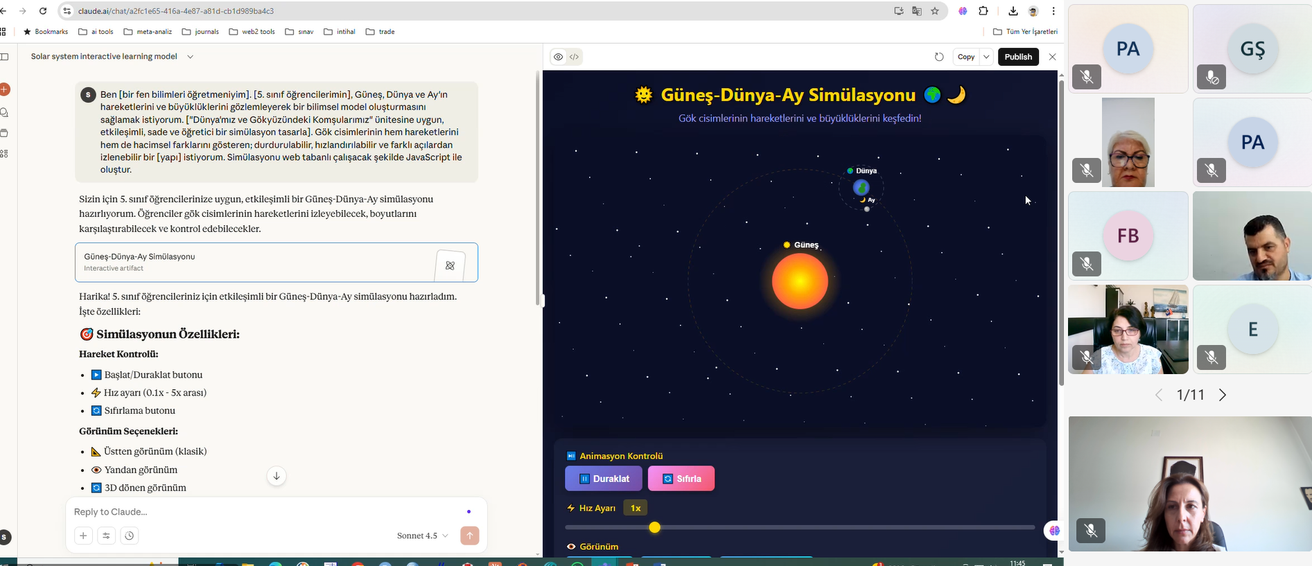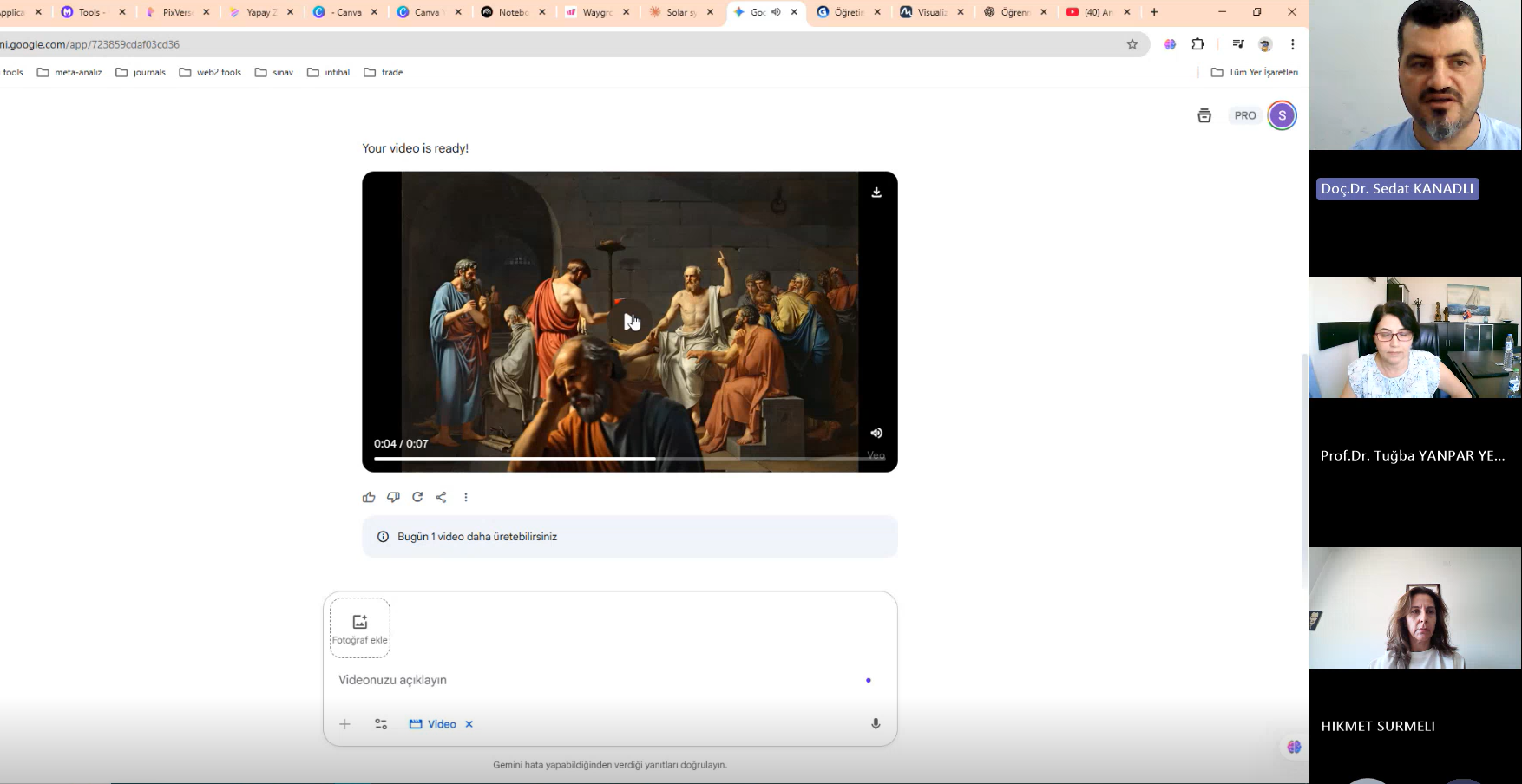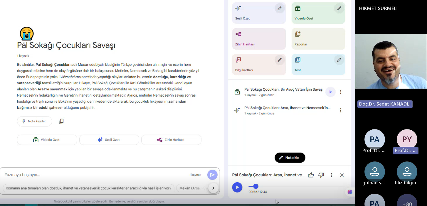 Etkinlikte, yapay zekâ teknolojilerinin eğitim alanındaki kullanımına odaklanılarak, öğrenme ve öğretme süreçlerinin farklı aşamalarında uygulanabilecek yapay zekâ araçları uygulamalı biçimde tanıtıldı. Katılımcılara, öğretim planı hazırlama, ölçme-değerlendirme, sunum, görsel, video, oyun, simülasyon ve bilgi kartı oluşturma gibi öğretim süreçlerinde kullanılabilecek istem (prompt) uygulamaları hakkında örnekler sunuldu.