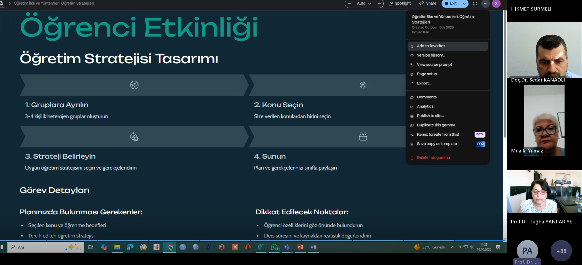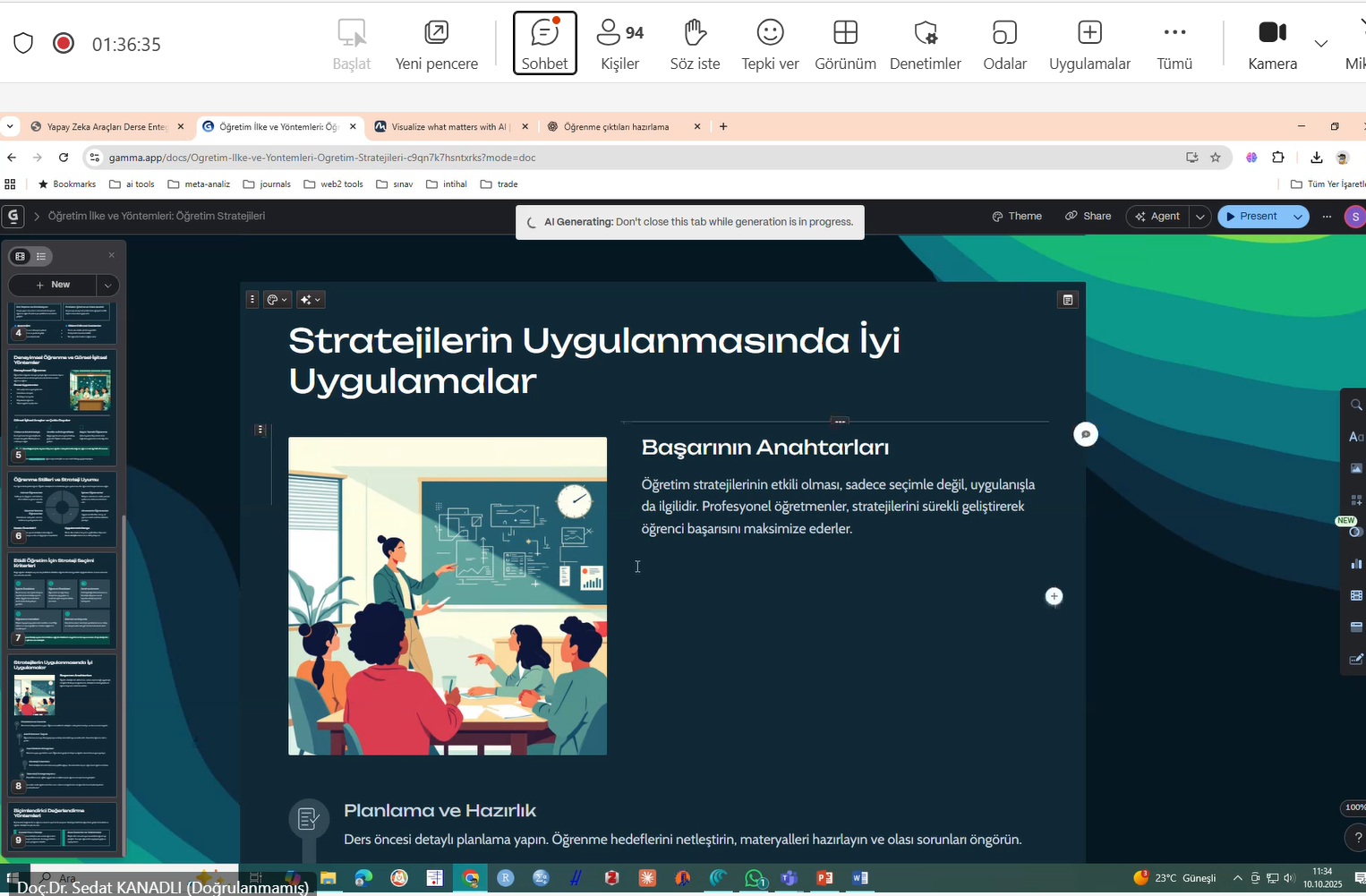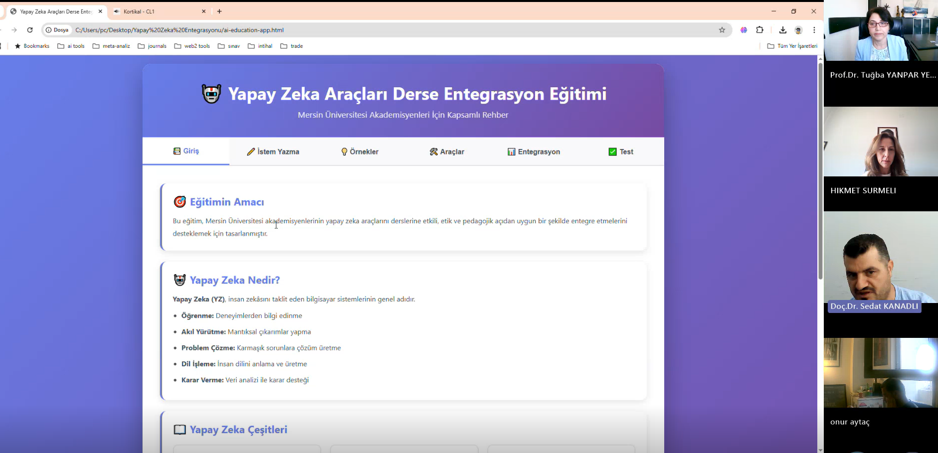 Mersin Üniversitesi Öğrenme ve Öğretmeyi Geliştirme Uygulama ve Araştırma Merkezi (ÖGEM) ile Eğitim Fakültesi iş birliğiyle düzenlenen “Eğiticilerin Eğitimi I” programının ilk etkinliği, “Yapay Zekânın Öğrenme ve Öğretme Süreçlerine Entegrasyonu” başlığıyla 10 Ekim 2025 tarihinde çevrim içi olarak gerçekleştirildi.