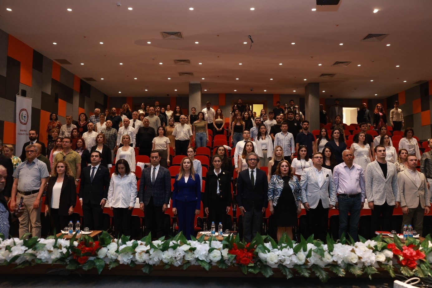 14 Mayıs 2025 Çarşamba günü, 1839 yılında Mekteb-i Tıbbiye-i Şahane’de açılan ilk eczacılık sınıfı ile ülkemizde eczacılığın akademik bir meslek haline gelişinin 186. yılı olan “14 Mayıs Eczacılık Günü” kutlamaları, Cumhuriyet Alanı’ndaki Atatürk Anıtı’na çelenk sunulmasıyla başladı. TEB 25. Bölge Mersin Eczacı Odası tarafından düzenlenen 14 Mayıs Eczacılık Günü Etkinlikleri, Mersin Eczacı Odası’nın MESAP Konferans Salonu’ndaki törenle devam etti. Törene; Rektör Yardımcımız Prof. Dr. Ahmet Hakan ÖZTÜRK, Fakültemiz Dekanı Prof. Dr. Necmiye CANACANKATAN, Mersin Tabip Odası Yönetim Kurulu Üyesi Dr. Abbas KOLUAÇIK, Türk Eczacıları Birliği Merkez Heyeti Üyesi Uzm. Ecz. Özgün SAĞIR, 25. Bölge Mersin Eczacı Odası Başkanı Ecz. Aliye AKGÜL AYDIN, Güney Ecza Kooperatifi Genel Sekreteri Uzm. Ecz. Çağrı Erdem ÖZDEMİR, akademik ve idari personelimiz ile Eczacılık Fakültesi öğrencilerimiz katıldı. Tören, saygı duruşu ve İstiklal Marşı’nın okunmasıyla başladı.