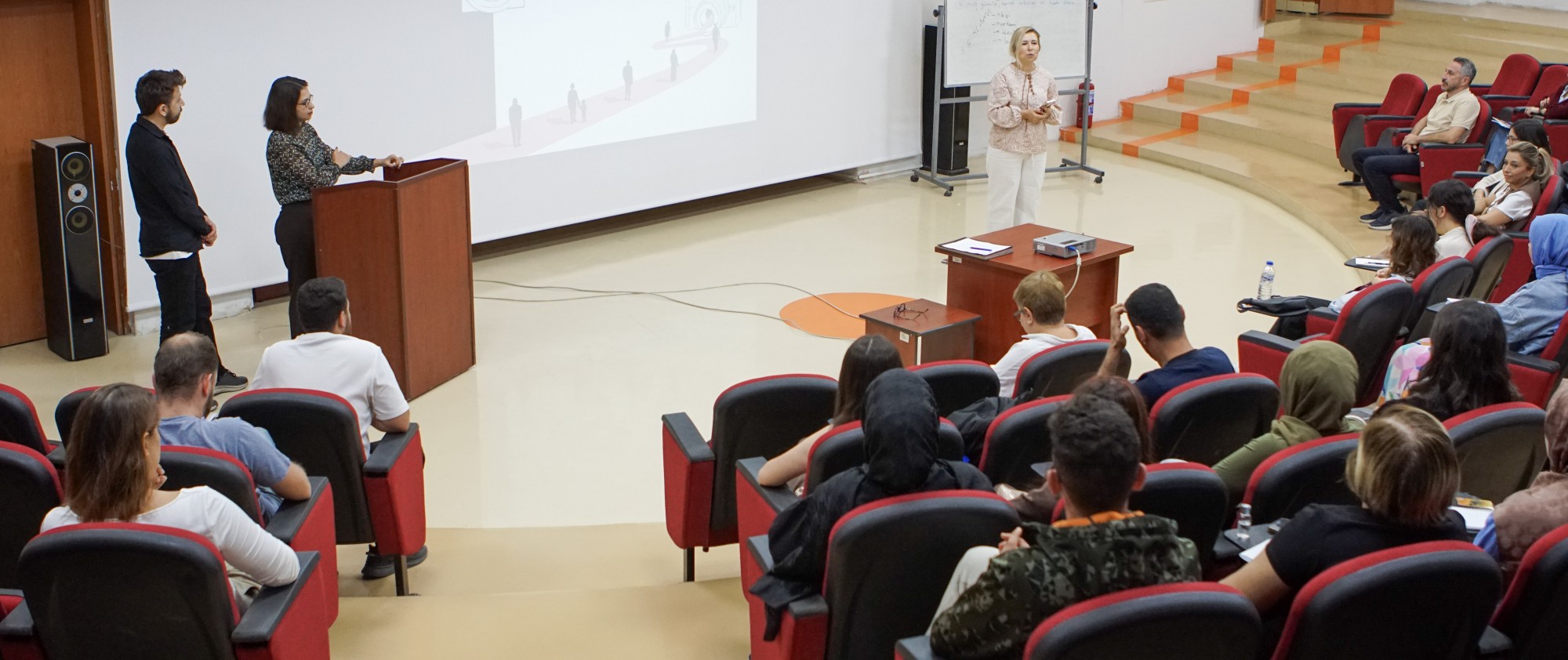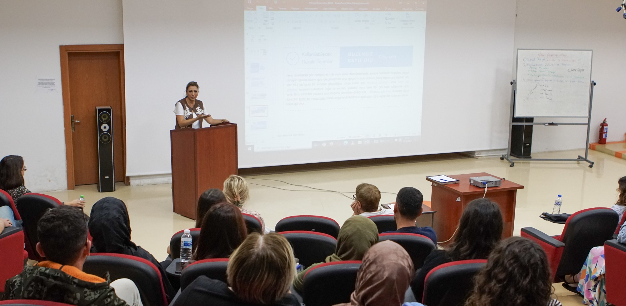 Açılışın ardından, Medya ve Göç Derneği Direktörü Dilek İçten ile Prof. Dr. Esra Dik sunumlarını gerçekleştirdi. Sabah oturumlarında “Göç Terminolojisi ve Mersin’de Göçmen Nüfusu” başlığı altında, göç alanındaki temel kavramlar ve Mersin’deki göçmen nüfusunun güncel durumu değerlendirildi.