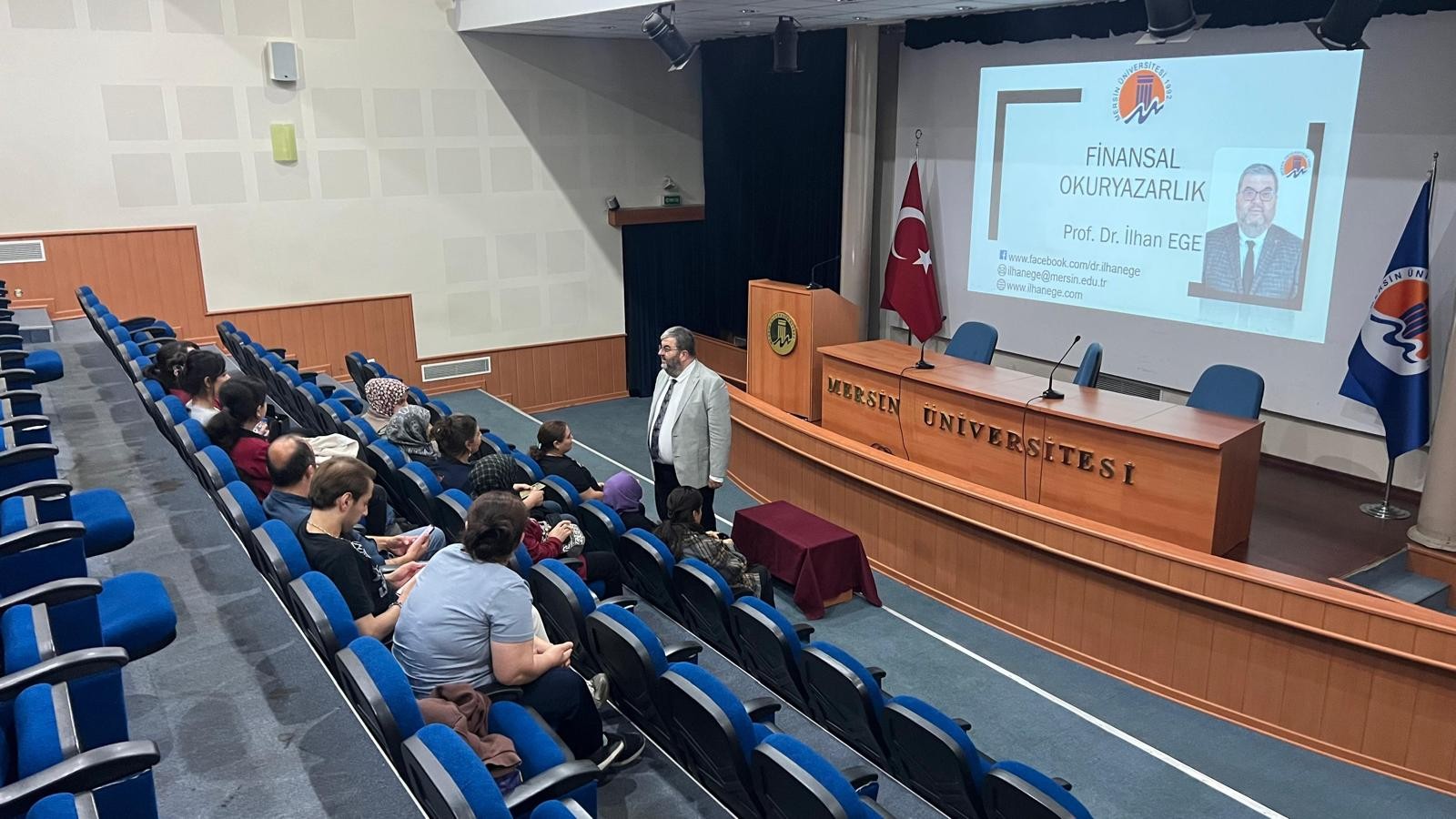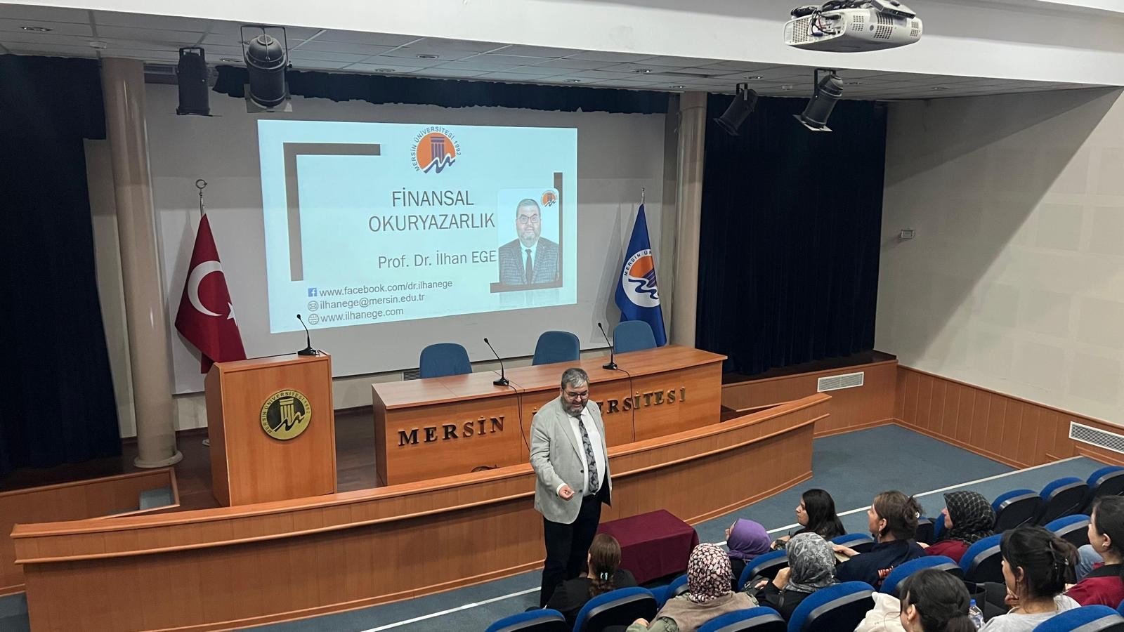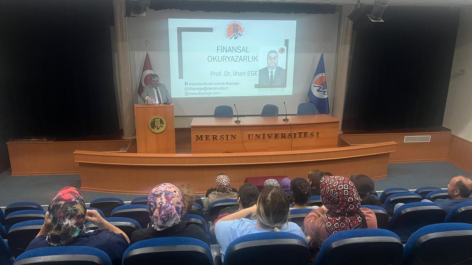 Mersin Üniversitesi Hizmet İçi Eğitim Müdürlüğü tarafından düzenlenen “Finansal Okuryazarlık Eğitimi”, Sosyal Bilimler Meslek Yüksekokulu Müdürü Prof. Dr. İlhan Ege tarafından gerçekleştirildi. Eğitime, üniversitemizde İŞKUR İşbaşı Eğitim Programı kapsamında görev yapan personeller katılım sağladı. Prof. Dr. Ege, eğitimde finansal okuryazarlığın bireylerin hem kişisel hem de profesyonel yaşamlarında bilinçli kararlar alabilmeleri açısından önemine vurgu yaptı.